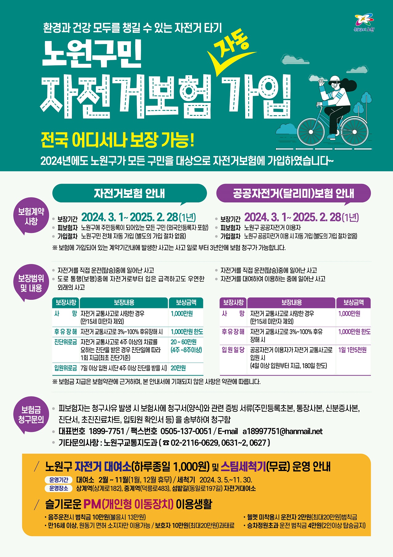 노원구청 : 노원구청 > 분야별정보 > 교통/청소 > 자전거 > 노원구민 자전거보험